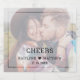 Give a gift of homemade beer to thank your wedding guests and personalise it with this custom photo beverage label. This modern design features your photo with an overlay and typography in simple black script that reads "Cheers" with your names joined by a heart and wedding date to customise. Designed by artist ©Susan Coffey.