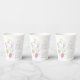Personalise these pretty confetti wedding paper cups with your own couple's names and confetti throwing instructions. Currently reads when Jennifer and Christian walk your way please toss these petals and shout hooray! Fill with your own choice of confetti or rose petals and give to your guests to throw your confetti choice at your newlyweds. Useful confetti wedding cups in shades of pink, green, cyan blue and grey on a white cup. Ideal to hold freeze-dried rose petals or paper confetti. © Original flower art drawing, and graphic design by Sarah Trett for www.mylittleedenweddings.com