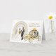 Congratulate the new bride and groom with this fairy tale card fit for royalty! Elegant bride and groom and gold coach.