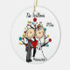 A pretty round ceramic keepsake ornament features a stick figure husband and wife having their first Christmas together as a married couple! Easily add your names and date to current year on this cute stick figure couple with Christmas tree design ornament. Makes a great gift idea!