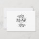 Simple wedding couple monogram initials with botanical line art leaf details for a beautiful and unique modern minimalist black and white wedding information and details card. Change any of the text to personalise.