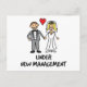 A cute cartoon of a newlywed couple captioned 'under new management'. Is it the bride or groom that wears the trousers in the marriage? Great for a wedding gift, or to wear on honeymoon.