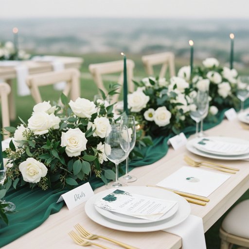 Wedding Cream All in one Emerald Green Rose Floral Tri-Fold Invitation