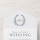 Dark muted blue and white hand-drawn growing leaf botanical art wedding all-in-one invitation. Personalise this detachable reply wedding invitation with your own wedding ceremony details, and add your meal options to your detachable replies. Simple leaf design circling your own monogram initials. Other colours and matching wedding items available. © Original leaf drawing and design by Sarah Trett for www.mylittleedenweddings.com on Zazzle.
