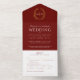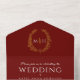 Wedding dark red gold white oval leaves monogram all in one invitation