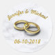 Wedding Date Bride & Groom Customisable Gold Rings Classic Round Sticker
