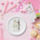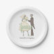 These wedding paper plates show a groom presenting a bouquet of flowers to his bride. Across the image is written in mint green "forever". At the bottom is your custom text in grey. Cute, with a retro feel! *Clip art used in this design is copyrighted by Encore Software, Inc., which permits use to its licensors. All rights reserved.