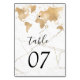 Wedding Destination World Map Gold Removable Heart Table Number