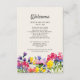 Wedding details enclosure card with cute boho, country-style purple, yellow, red, and pink watercolor wildflowers on an ivory/cream/white background. This card allows plenty of space for you to add all of the information your guests will need for the wedding weekend. Put one of these into your gift bags for your guests as they arrive at their hotel or rental.