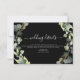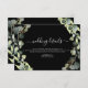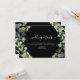 Eucalyptus Greenery Succulent Botanical Watercolor Spring Wedding Details Card on black background - includes beautiful and elegant script typography with modern botanical leaves and greenery for the special Wedding day celebration.