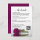 This beautiful wedding enclosure card is designed to give you extra space for whatever information your guests may need, including RSVP, registry, reception, travel, accommodations, etc. as well as a customisable QR code directing your guests to your website for more information. The card features a gorgeous design with a single magenta, berry, or cassis purple coloured rose and a lacy script calligraphy title reading "the details."