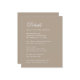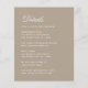 A very simple budget wedding details enclosure card, just white text on taupe background, an earthy colour between brown and grey. The title Details (that can be changed) is written in an elegant calligraphic script.