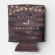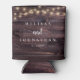 Wedding Dinner and Party, Rustic String Lights, cottage dark wood background Can Cooler