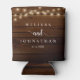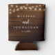 Wedding Dinner and Party, Rustic String Lights, cottage dark wood background Can Cooler
