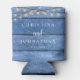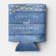 Wedding Dinner and Party, Rustic String Lights, navy blue wood background Can Cooler