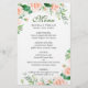 Wedding Dinner Menu Elegant Blush Roses Floral