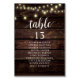 Wedding Dinner Guest Seating Table Chart Card, Modern Rustic Script, Cottage String lights, Dark Wood background