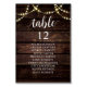Wedding Dinner Guest Seating Table Chart Card, Modern Rustic Script, String lights, Dark Wood background