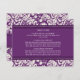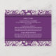 Direction card inserts for wedding in elegant and modern eggplant dark purple and cream off white classic floral damask pattern. Customise these cards with your wedding directions or other information to be included with your wedding invitations, also perfect for anniversary parties or birthday parties. Available in a wide range of matching wedding products.