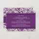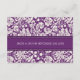 Direction card inserts for wedding in elegant and modern eggplant dark purple and white classic floral damask pattern. Customise these cards with your wedding directions or other information to be included with your wedding invitations, also perfect for anniversary parties or birthday parties. Available in a wide range of matching wedding products.
