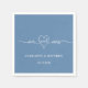 A trendy dusty blue background. Mr and Mrs with a heart. Personalise and add your names and wedding date. White text.