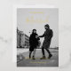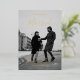 A personal photo is the basis of this custom elegant wedding invitation with gold foil for added elegance.