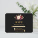 Wedding Elegant Burgundy Floral Black Gold RSVP Card
