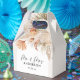 Modern bohenian boho rust terracotta palm leaf pampas grass dried botanical trendy elegant watercolor floral wedding favour box design. Modern script Mr and Mrs lettering. Part of a wedding collection.