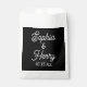 These elegant script modern typography black and white favour bags are perfect to use for any of your wedding events! Personalise with the bride and groom names and wedding date. The background colour can be changed to fit your preference.