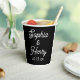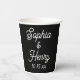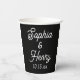 These elegant script modern typography black and white paper cups make the perfect addition to any of your wedding events! Personalise with the bride and groom names and wedding date.