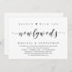 Modern Script themed, wedding elopement invitation card (Brunch With us, The Newlyweds). It is perfect for your wedding elopement casual lakeside celebration.