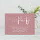 Announce your happily ever after in style with our modern script design wedding post-wedding elopement (happily ever after party) invitation card (dusty rose theme). Our Happily Ever After Brunch or Dinner party celebration Invitation card is ideal for couples who have decided to elope and want to host a party to celebrate their union. With its sophisticated yet playful design, this invitation is sure to set the tone for an unforgettable event. The invitation card features a minimalist design, adding a touch of timeless elegance to your celebration. Designed by TeeshaDerrick