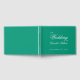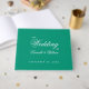 A simple wedding book with a modern colour, emerald green, and elegant white calligraphy.