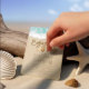 Engagement Party Invitation Card Templates - Summer Sandy Beach Write in Sand Text with Starfish and Seashell.