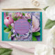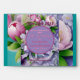 Beautiful & Elegant, Boquete of Pink & Violet Peonies with Satin Violet Bow at Bottom, surrounding A (Violet) Circle Horizon, topped with "Our Wedding" & "Date", on Layered (Two Shades at Top) Violet background.