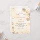 A golden watercolored background decorated with golden eucalyptus and faux gold glitter dust. Personalise and your name and ceremony details. Black and golden coloured letters.