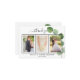 Add 3 of your own photos and a thank your note. A classic white background with black text and frame, eucalyptus. The text: Thank you on the front and your names on the back are written with a stylish hand lettered script with swashes.