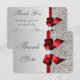 Wedding Faux Silver Sequins Red Bow Thank You Card