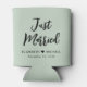 Sage green wedding can cooler party favours with "Best Day Ever" and "Just Married" in a stylish script, your first names and the date.