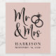 Give a wedding toast and maybe your wedding guests a fun souvenir keepsake of your special day with wine labelled with these custom blush pink wine bottle labels with "Mr & Mrs" written in a large script and an illustration of two wedding rings joined together. Add your name and wedding date.