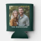 Celebrate your big day with this forest green wedding favour can cooler featuring a customisable photo and modern minimalist design. Perfect for rustic, woodland, and autumn weddings, this deep green style doubles as a practical drink cooler and a keepsake for your guests. Personalise with your photo, names, date, and location to create a thoughtful wedding favour that ties seamlessly into your forest green colour palette.
