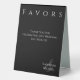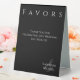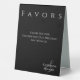 Enhance your wedding reception decor with this modern and elegant Tabletop Favours Sign in Black and White. This beautifully designed sign seamlessly blends with your theme, adding a touch of elegance to your table. Explore the Collection for a beautifully modern-themed wedding.