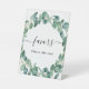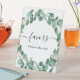 White background. Decorated with watercolored eucalyptus greenery. With the text: Favours, please take one!