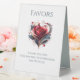 Enhance your wedding reception decor with this modern and elegant Tabletop Favours Sign, featuring a Modern Heart Shaped Rose. This beautifully designed sign seamlessly blends with your theme, adding a touch of elegance to your table. Explore the Collection for a beautifully modern-themed wedding.