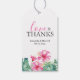 Elevate your wedding with these exquisite favour tags adorned with watercolor pink hibiscus flowers and vibrant monstera palm leaves in shades of pink and green. Personalise them effortlessly using the template fields, adding a touch of elegance to your destination wedding or summer-themed celebration. To explore more from this pink hibiscus flower wedding theme, visit: