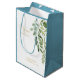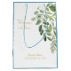 Wedding White & Gold Gift Bag. Names and Date. Foliage. Blue.