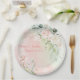Wedding Floral Elegant Pink Chic Girly Script Name Paper Plate
