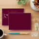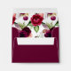 Inside: A pattern of watercolored flowers, roses in burgundy and pink with boho style feather. White background. Outside: Elegant dark burgundy background. Modern, romantic and elegant. Perfect for wedding invitations, save the dates and thank you cards. Templates for Your names and return address on back. Golden coloured letters.