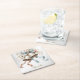Watercolor White Flowers Golden Frame Silver Teal Square Paper Coaster. Unique, beautiful, stylish design. Easy to be personalised. Font style, size and colours can be changed. Matching items available.