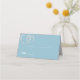 This folded name place card is shown in basic white with a smoky blue background colour, shown with a diamond sparkle two hearts accent.